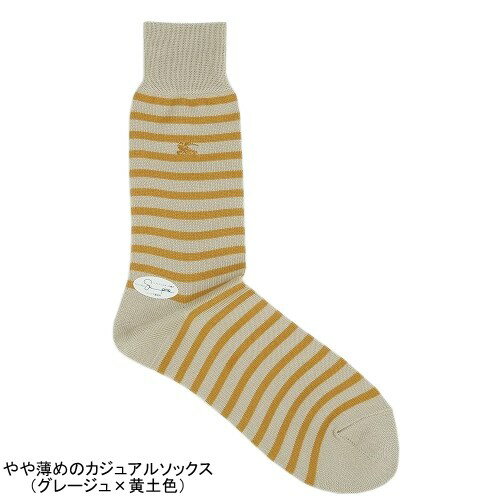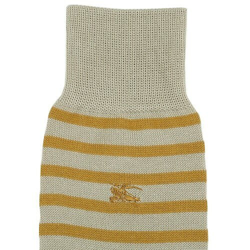【希少品】【BURBERRY】バーバリー 日本製 ホースマーク刺繍「スーピマ綿」ボーダーカジュアルソックス(靴下) 灰ベージュ×黄色『18/3/3』130318【ネコポスで送料無料】